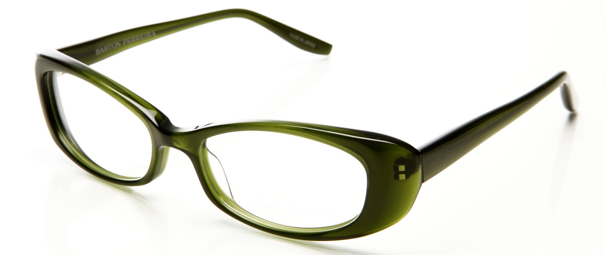 The transparent glow of silky hunter green zyl highlights the beautiful shape of this frame by the California design duo Patty Perreira and Bill Barton. “Luxury” is a keynote word for all Barton Perreira creations – luxury in style, material, fit and craftsmanship. Just a hint of a cat eye shape brings extra allure to this deftly crafted design. Other colours available include shiny black, plum and umber tortoise. You can find a lovely selection of Barton Perreira frames at jlc opticien in Paris. www.jlcopticien.com Additional information at www.bartonperreira.com JG