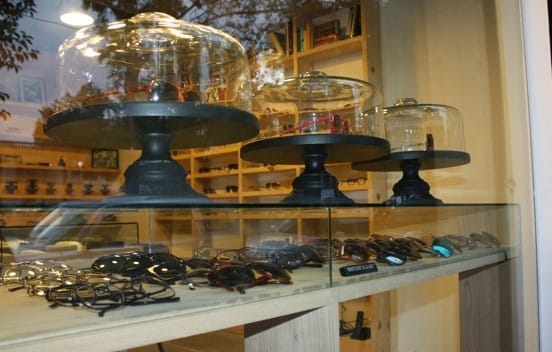 1st July 2011 Our search for top-rate opticians has taken us a long distance from home this time, but to a place for which I have a special fondness (but that’s another story, Mexico is one of my favourite places to visit). In the incredible metropolis of Mexico City is this unique little shop, an inspirational gem in our view, and so it’s very pleasing to share it with our readers. If it was in my neighbourhood I’d be a daily visitor, just for browsing the fine eyewear and touchy feely atmosphere. The opening took place in May and according to owner Jose Juan Castellanos, they are rushed off their feet! Some lovely collections are featured and displayed in a quirky way which reminds me of the colourful arrangements of a fine delicatessen, a traditional book store or the precise presentation of an old-school cake shop! My favourite details are in fact the cake stands in the window, which give special place to individual frame designs.