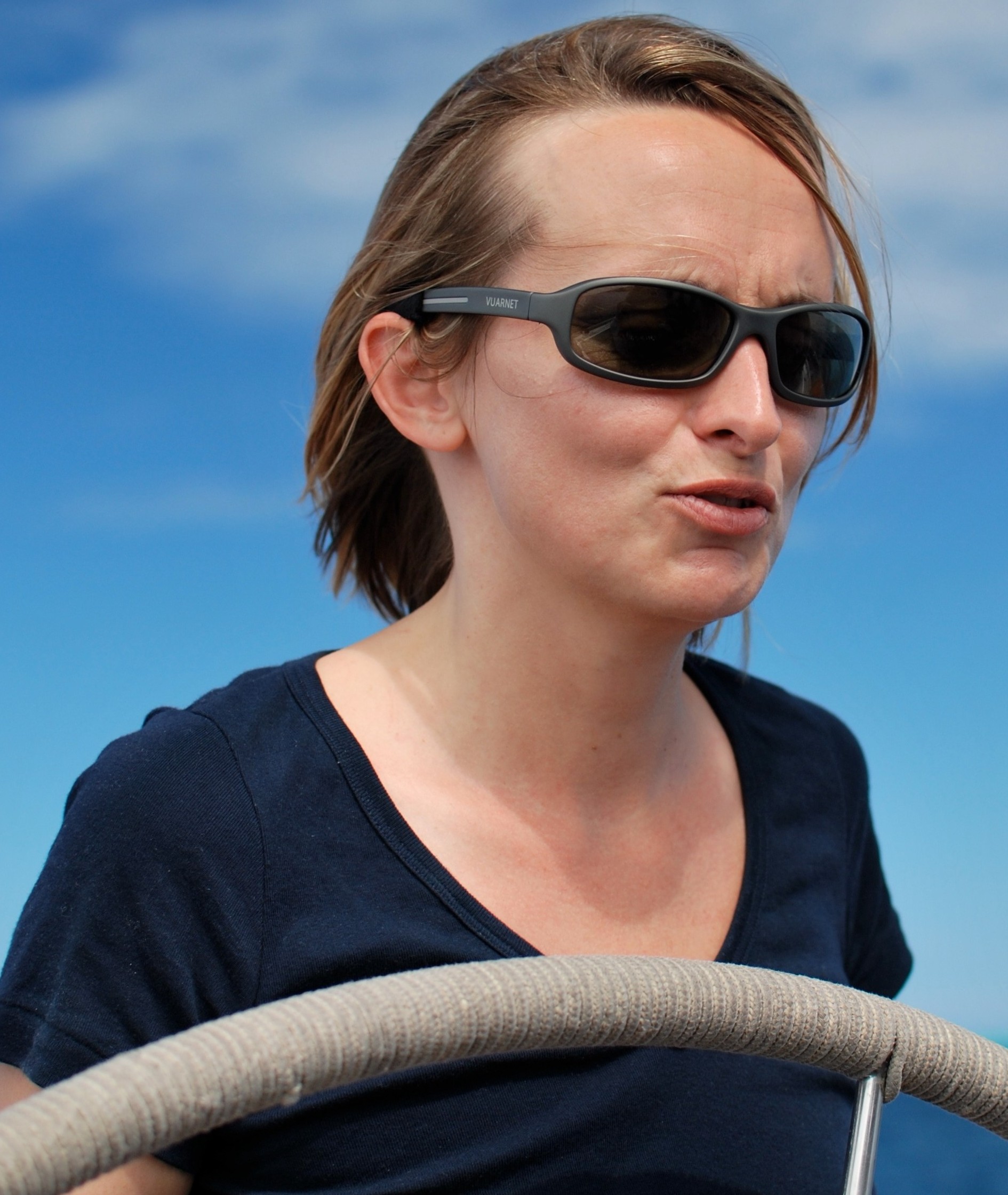 21st August, 2011 “My fashion style is classical, yet not boring. So I like to find clothes that have extra special details, or sometimes – in bright colours. Quality and good cuts are very important. For example, if I’m looking for a raincoat, it’s usually Burberry, and I like designs by Catherine Andre. I also like Renouard (www.maroquinerie-renouard.com) from Brittany. With glasses too, I like something different. I have a small face, and the trend right now is for big frames, but large shapes make me look like a fly! It was a problem to find small sunglasses, but when I tried on Lafont, it was – OK – that’s it! I didn’t know the brand before, and I really like the small shape. I love to sail and on the water wear Vaurnet (Anne-Solène in Vaurnet, shown above) with polarized lenses. The shape is great as it protects the eye area, and they are really designed for sport – they don’t move and fit well.” JG