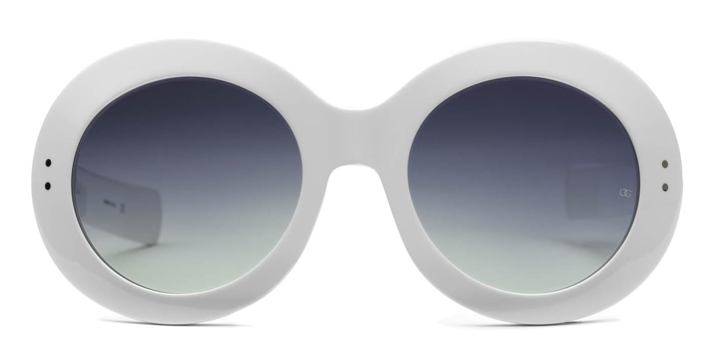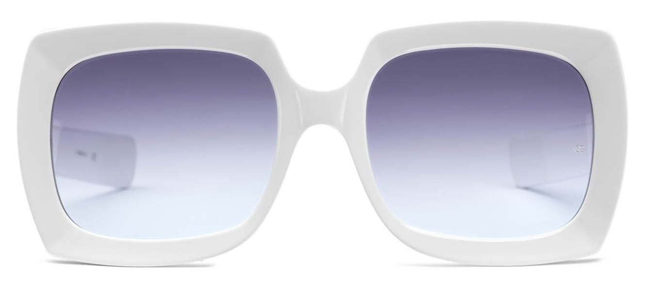 17th April 2012 These 1960s larger-than-life styles Koko and Fuz, pictured above, are by Oliver Goldsmith, and they are very much still a feature of the present Oliver Goldsmith collections in this pristine stand-out white, a colour Audrey Hepburn wore so well (in Two for a Road). It’s statement vintage styling at its best – big squares and rounds are a perfect choice as we go into spring/summer and much is owed to Oliver Goldsmith for this and many more 1960s trends in sunwear that happily live on. Square, by the way, is fighting its way back in while everyone talks about the round styles…. I expect it to grow and grow as an important, characterful trend for 2013….