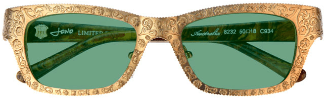 4th May 2012 “I’ve had a whole Western thing going on in my head for some time, and I love the combination of leather and metal. I found a vintage Western belt buckle in the market, and we commissioned two jewellery makers to actually carve the pattern in reverse for Rancho Deluxe, so that we could stamp the frame shape out. I designed the pattern specifically for the shape of this frame – it’s not just stamped out of a sheet. My favourite colour is the copper, like the rivets on old jeans, combined with a ‘Bentley-dashboard’ briar wood acetate temple – the light green sun lenses compliment this combination beautifully.