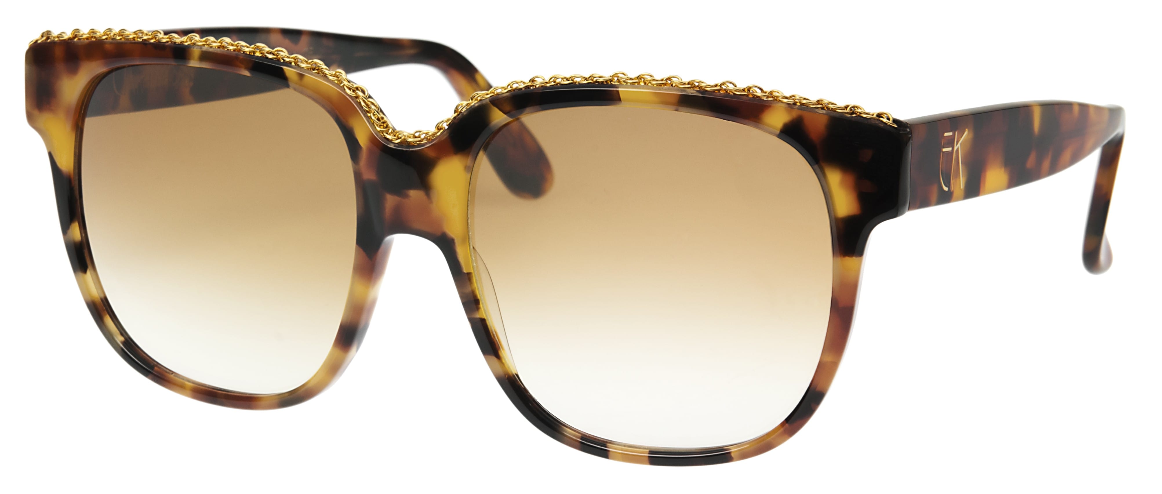 Emmanuelle Khanh Paris sent me a few examples of their tortoise pieces including classic panto spectacles and bold 80s and 90s shades. Strong on its retro roots, this design below boasts a golden chain detail, a showy but vibrant and exciting detail if you can carry it off. Fine detailing in gold such as studs and chains are very much a part of the mix right now. www.emmanuellekhanhparis.com