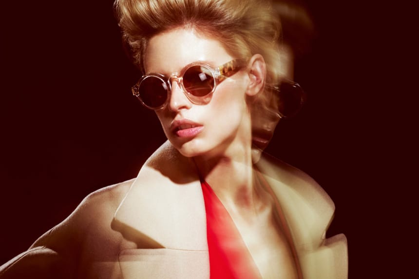 If a whole tortoise style is too dark or busy for your complexion and style, look at designs that use tortoise in interesting colour combinations. At Zanzan, this neat Limited Edition crystal/tortoise design (excellent for smaller faces) – style Mizaru – brings a touch of the unexpected; the sides are a thick, chunky, brightly contrasted acetate to set off the transparent crystal front and dark grey lens. Also very now! See this one close up at www.farfetch.com