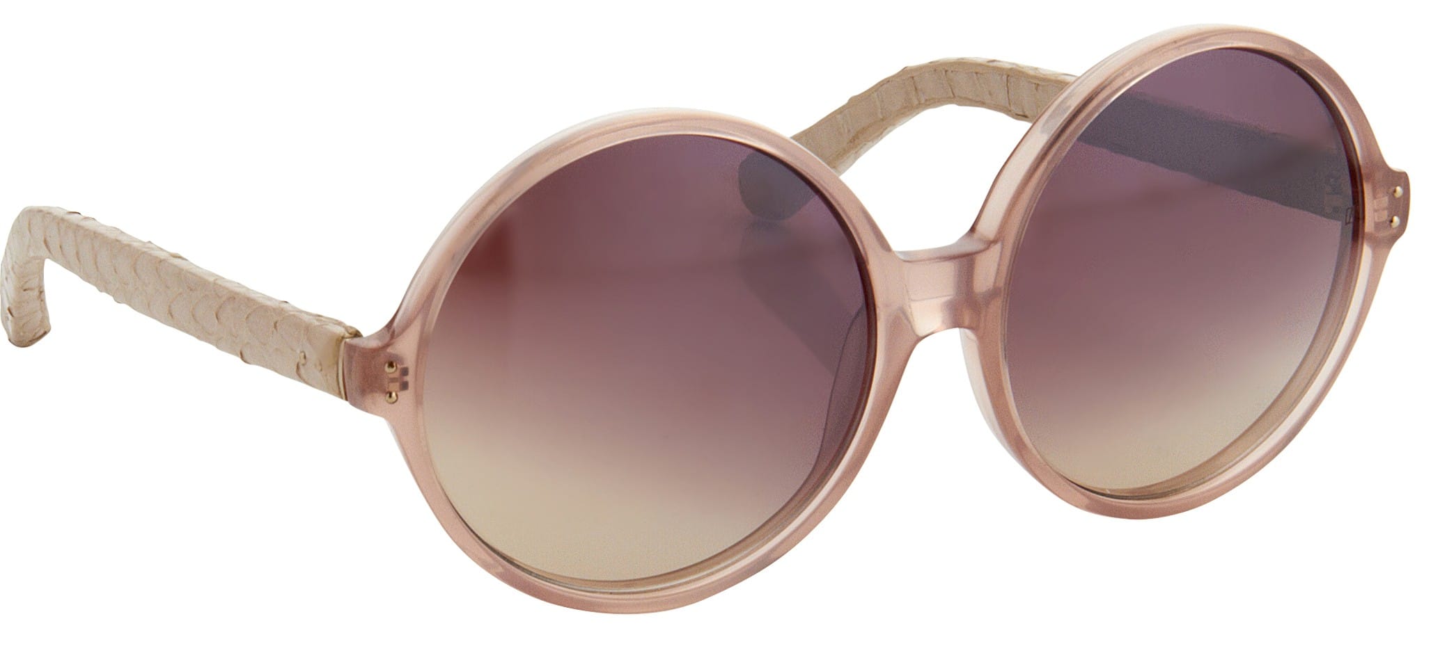 Eyestylist.com spoke to the team at Linda Farrow on Monday: “We are launching the Spring/Summer ’13 collections, across New York, London and Paris Fashion Weeks, because we work with a lot of different designers on collaborations. Trends coming up for 2013 include, for Linda Farrow Luxe, a lot of gold, and classic, elegant and timeless designs.” New translucent colour tones include a sumptuous aqua with snakeskin and a very soft pastel pink (pictured below). Tortoise, black and a variety of delicate neutrals led the colour palette, while shapes varied from soft circles and ovals to the more angular rectangles.