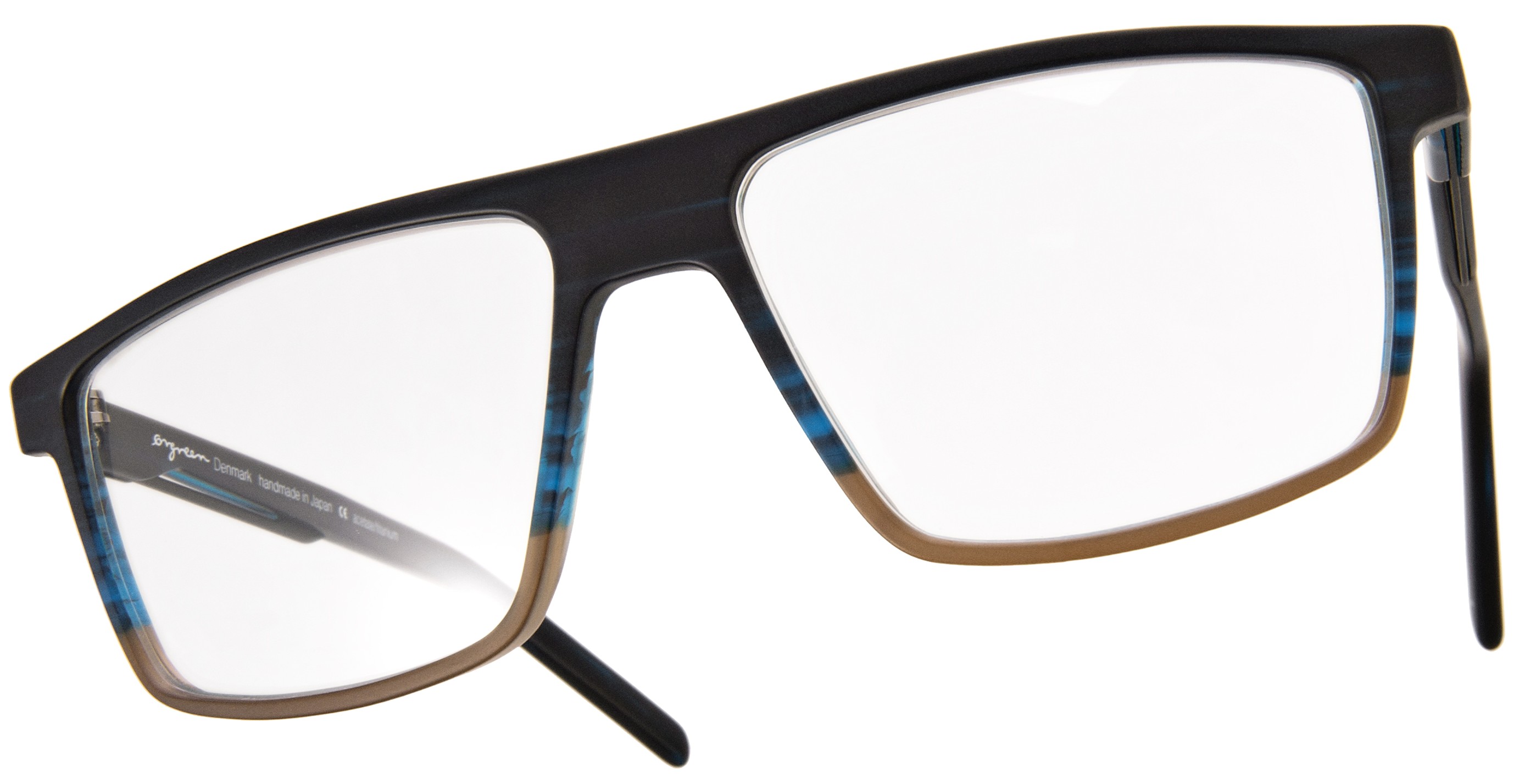 This stunning frame from Orgreen has artistic flair with its lovely graduated colour scheme that begins at the top, and continues with a subtle pattern that ends in transparency on the bottom. Acetate and titanium harmonize the temple details. The contemporary rectangular shape suits many different face shapes, and the overall effect is stylish and elegant. The various colour combinations co-ordinate well with autumn fashion tones. For more information, visit www.orgreen.dk JG