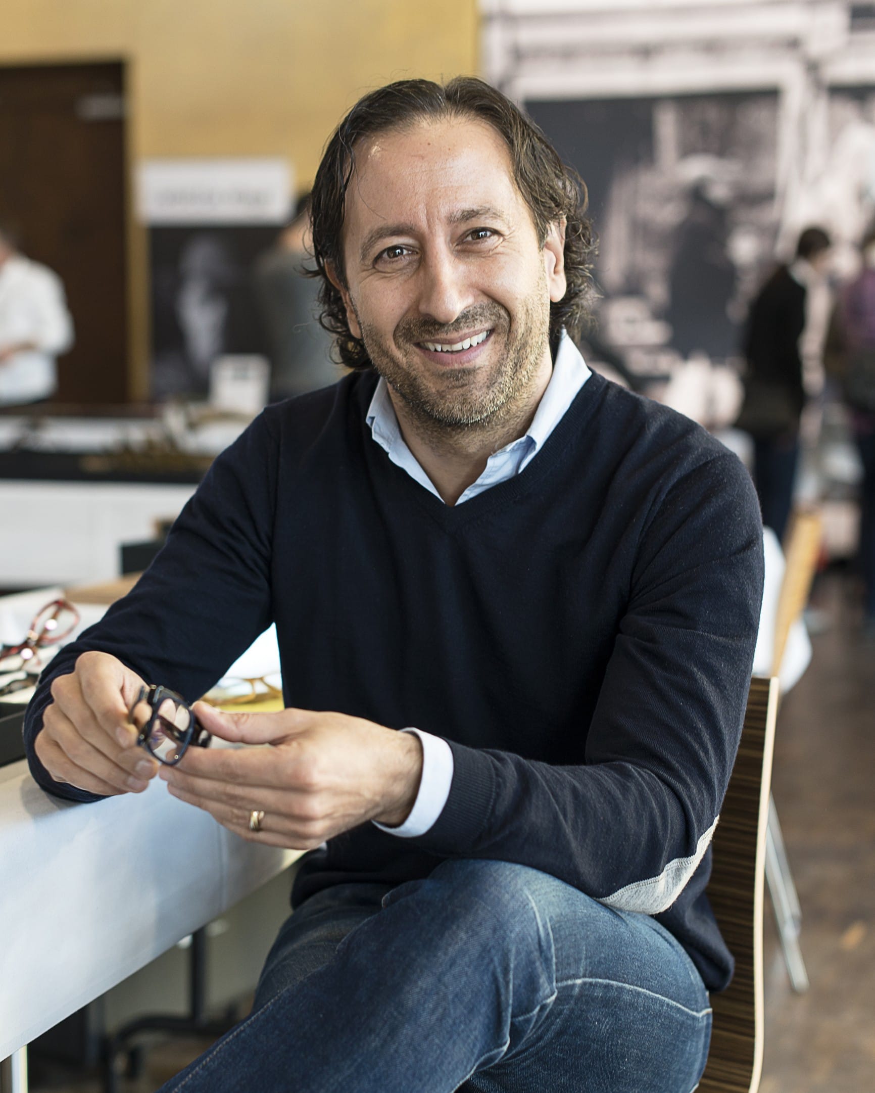 Sid Firoozkoohi travelled from London to exhibit the new collection from Coppe+Sid, and Sid (above) explains how he and Coppe want to make their designs memorable. So each frame has a small blue lapis lazuli stone tucked inside the temple tip. “Lapis Lazuli is the friendship stone, “says Sid, “and we want to present this feeling to the people who wear our glasses.” Acetate designs are all polished to gleaming perfection. www.eyedesignclub.com www.hallofframes.ch JG