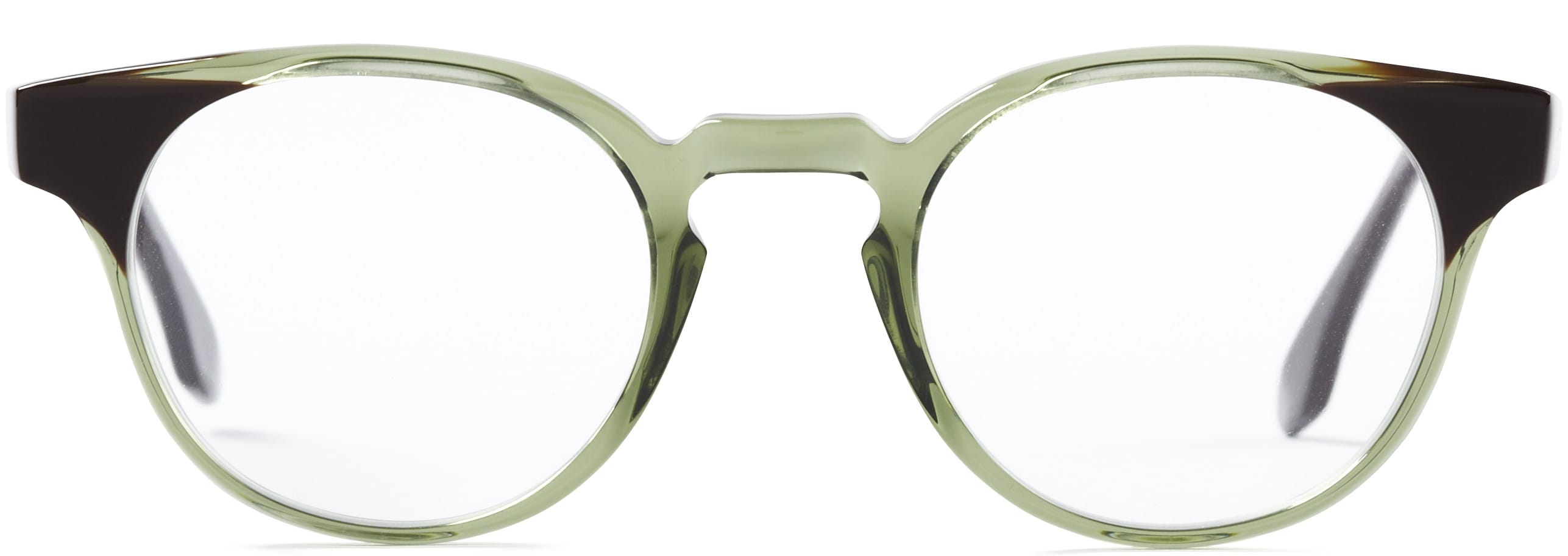 Bailey (above) by Claire Goldsmith Legacy explores the deeper intensity of pastel colourations, with a transparency play of jade on the frame front, highlighted with chocolate temples. A sculptural union of classic and contemporary defines the frame shape. www.olivergoldsmith.com