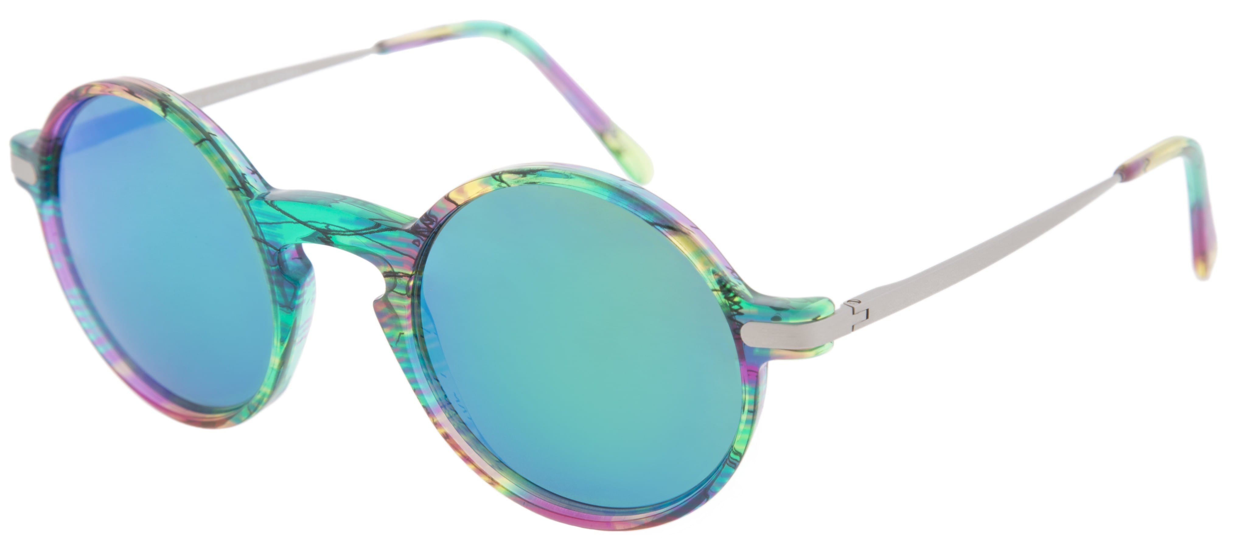 Both sea and sky tones are featured in Summazeit (above) by Andy Wolf. Luminous acetate in tones of turquoise, violet, yellow and soft pink highlight the round shape. Handcrafted in Austria, the turquoise lenses are stunning! www.andy-wolf.com JG