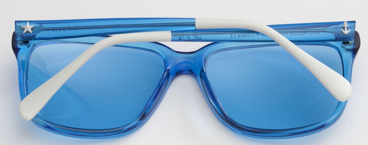 29th December 2012 When the temperatures dip to zero, resort fashions look so tempting…..so do sunglasses that look as if they were especially created for the beach and poolside. I’ve come across two lovely styles that are fun, colourful, and perfect for warmer climes and sunny days. Sheriff and Cherry’s nautically inspired Mediterranean blue acetate frames (above style 8766) with blue lenses are spiked with white trim on the temple ends, and an anchor and star motif, handmade in their Croatian workshop. www.sheriffandcherry.com