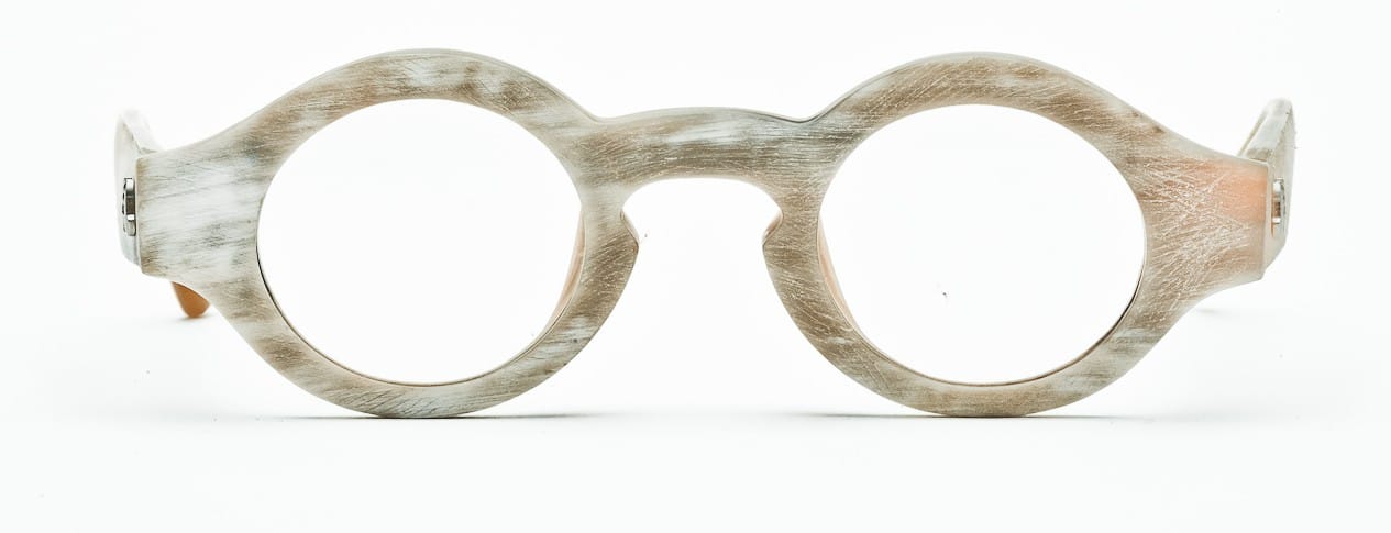 I have been looking at the beautiful grainy effects and natural finishes and textures in eyewear. Not only are we seeing more and more frames made from horn and wood where the natural colouring, texture and natural grains in the material are clearly visible, but there are also more and more wood-look and marbled acetate styles on offer, that have grainy surfaces or striated colouring….all of which are very elegant and show remarkable attention to the end result.