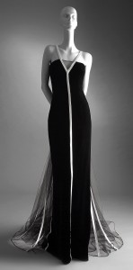 6.1992 1993 Fall Winter HC Black velvet evening dress white ribbons