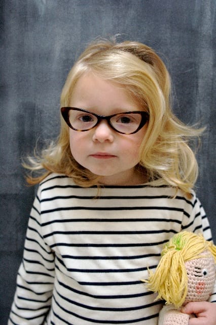 Beautiful Belle above) wears a sleek mini cat eye (style 0724) in tortoise acetate by Red Optical. The Netherlands based company has a delightful range of styles that youngsters will really enjoy wearing. Great colours too! Both Zoobug and Red Optical have eyewear collections that are fun, fashionable, and expertly crafted to cope with energetic children’s activities! www.redoptical.com JG