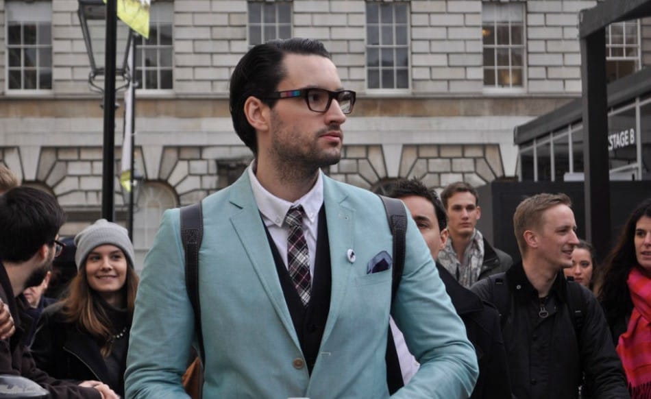 19th February 2013 London Fashion Week attracts some inspired street style outside its doors at Somerset House. The sunshine at the weekend brought out some interesting accessories including vintage hats and avantgarde head dresses, very special eye make-up and an array of sunglasses in all shapes and sizes – we spotted some very well-known styles and some of the crazier sunglass statements – plus a few beautifully worn individual spectacles by independent labels. These included Chip in tortoiseshell by Kirk Originals, worn by Callum Watt of the excellent men’s style blog, Maketh The Man – www.maketh-the-man.com. For more images watch our Facebook page today.