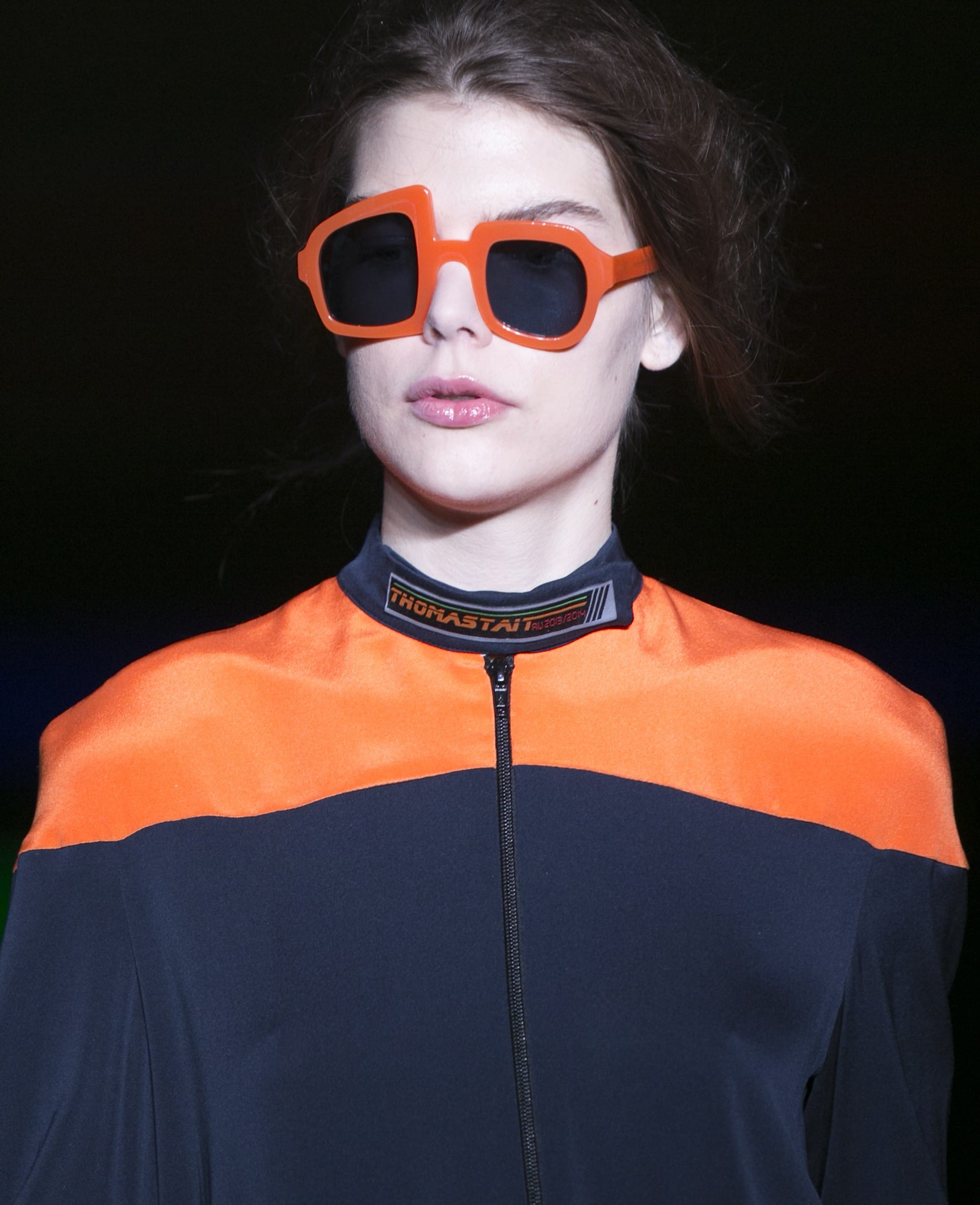 25th February 2013 Sunglasses have become a very popular sight on the international fashion stages, and the more avantgarde and eye-catching the better. In London, one show that caught our imagination and included some exciting shades to accessorise the collections, was Canadian designer Thomas Tait’s autumn/winter presentation, which took place at the very cool Carlton House Terrace Garages in St James’s (www.stjameslondon.co.uk).
