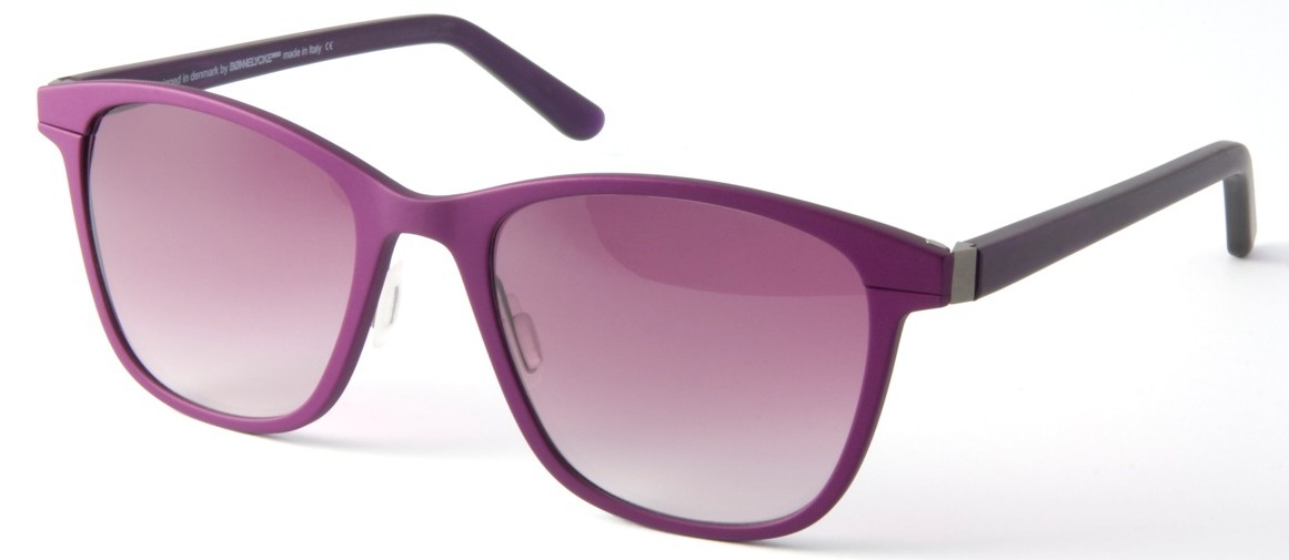 The re-emergence of metals was evident everywhere. Highlights included the clean-cut styles shown to us by Jacob Kilsgaard from Denmark, whose label specialises in aluminium; he has combined his minimal design with more concentrated blocked colours – pictured – model Sun 5.8/8, in a strong, deep purple – an alluring edgy fashion colour for this year. These sunglasses feature Zeiss lenses, a perfect partner to these precisely built technical frames. The label is one of just two leading companies in Denmark to be granted the Zeiss certification and the lenses feature a miniature logo endorsing the authenticity. www.kilsgaard-eyewear.com