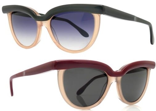 Anne et Valentin greet spring with sunglass models that are gems with colour and design. We love the extended cat-eye shape of Douala (above) and the juxtaposition of pale and dark – pale pink is accented with moss green or wine. www.anneetvalentin.com
