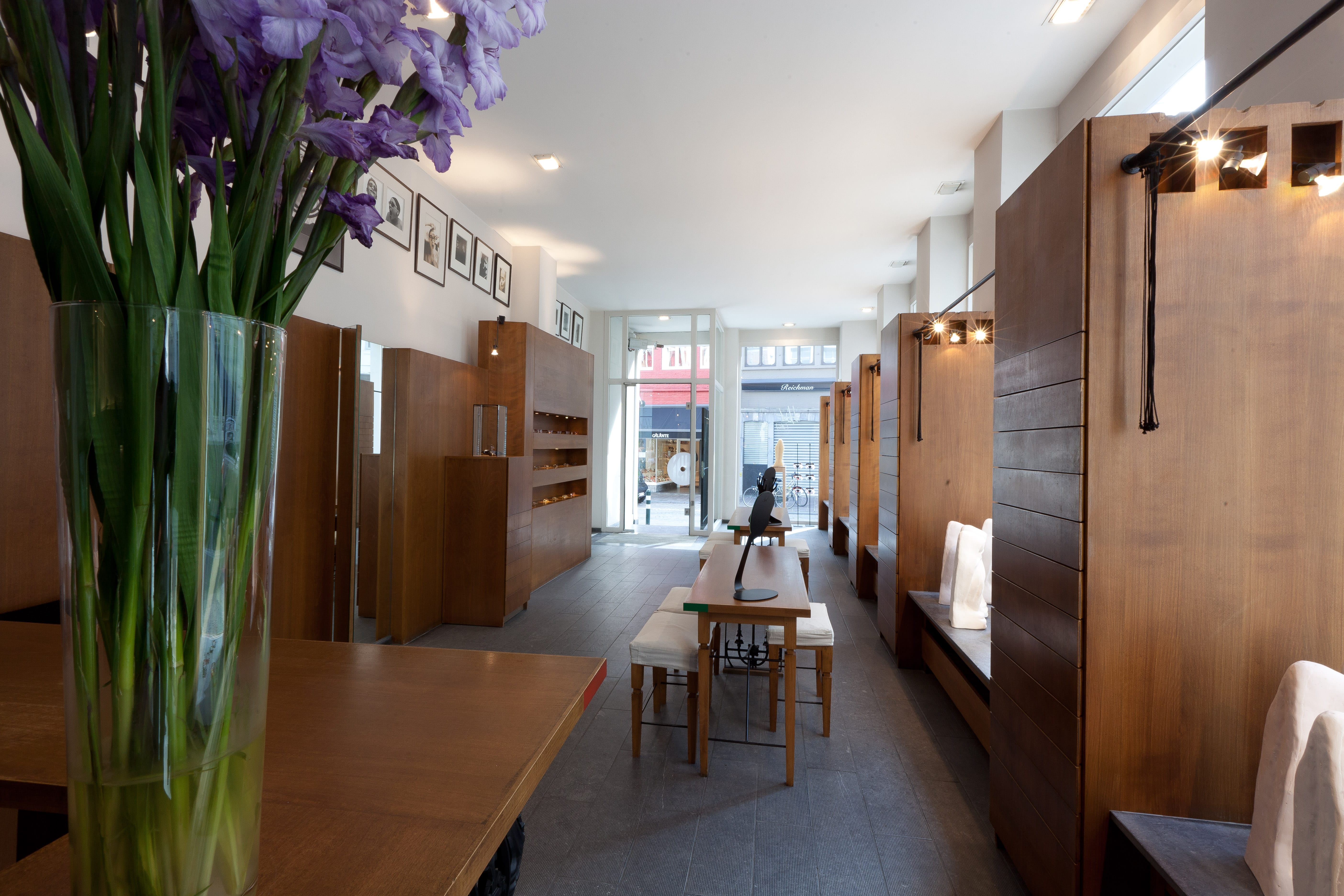 1st April 2013 Hoet in Belgium traces its optical origins to 1884, and the family legacy continues to this day. Patrick Hoet and his daughter Bieke oversee the design office with their team, and the Hoet stores are run by Lieselotte Hoet (Patrick’s daughter) and Lieselotte’s husband Frederik Ghesquière. The tenacity of the company is formidable, as they have endured World Wars and economic upheaval. Hoet faith in the future was confirmed when just after WW2, they opened a boutique in the charming setting of Bruges, a major attraction for tourists. The present location of the Brussels store opened seven years ago, and the unique interiors of both shops were created by Hoet.