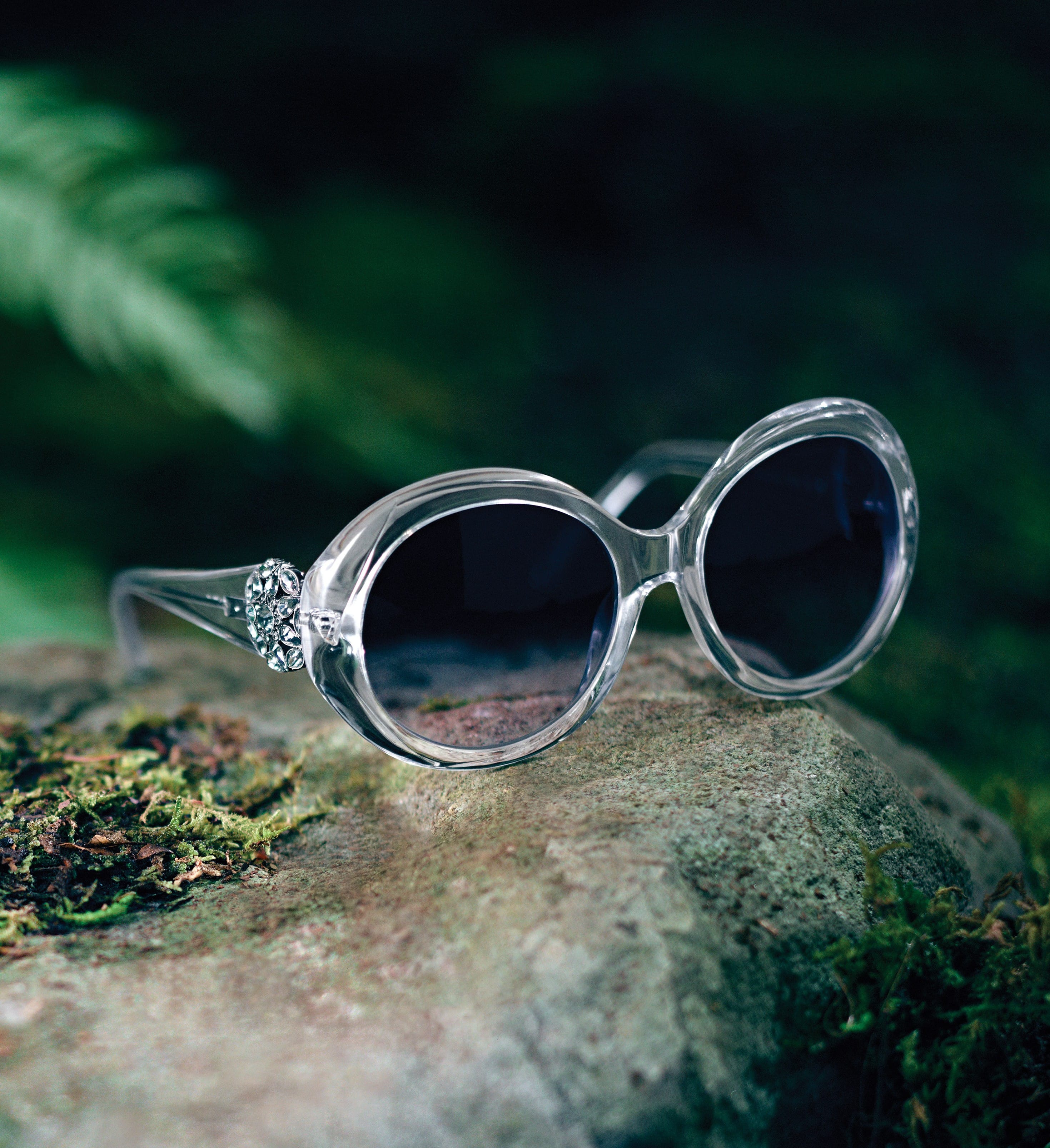 Another of our favourites is Aldora – a refined, sleek design in crystal acetate. Crystal against the dark lenses has an aura of mystery and surprise – a definitive diva design! www.kenmarkoptical.com JG
