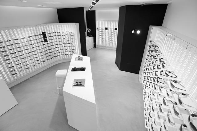 “Today we sell only very high quality labels, and no industrial brands at all,” he explains. “Our selection includes styles by Ron Arad, Hoffman, Matsuda, Chrome Hearts, Kuboraum, Rolf Spectacles, Thierry Lasry, vue dc, Cutler & Gross, Brioni, Masunaga, Hapter, Rick Owens, and Lunor…and we are working on our own label to be ready for 2014. We also sell handmade silver jewellery by Manuel Bozzi and the stainless steel ‘butterfly’ pince-nez by Hoet.”