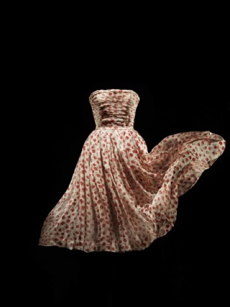 1st July 2013 Christian Dior’s family home in the French seaside town of Granville, was an inspiration for his work throughout his life. Villa “Les Rhumbs” now the Christian Dior Museum, presents an intriguing exhibition this summer that links Impression art with Dior’s creations. The enchanting surroundings of “Les Rhumbs” with its garden overlooking the sea, echoes the “alfresco” – open-air ideal – of Impressionist artists that notably influenced Dior’s fashion creations. Above: Rose Pompon, silk chiffon dress printed with roses. Dior Haute Couture collection, spring-summer, S/S 1952, Sineuse line. Copyright: Laziz Hamani