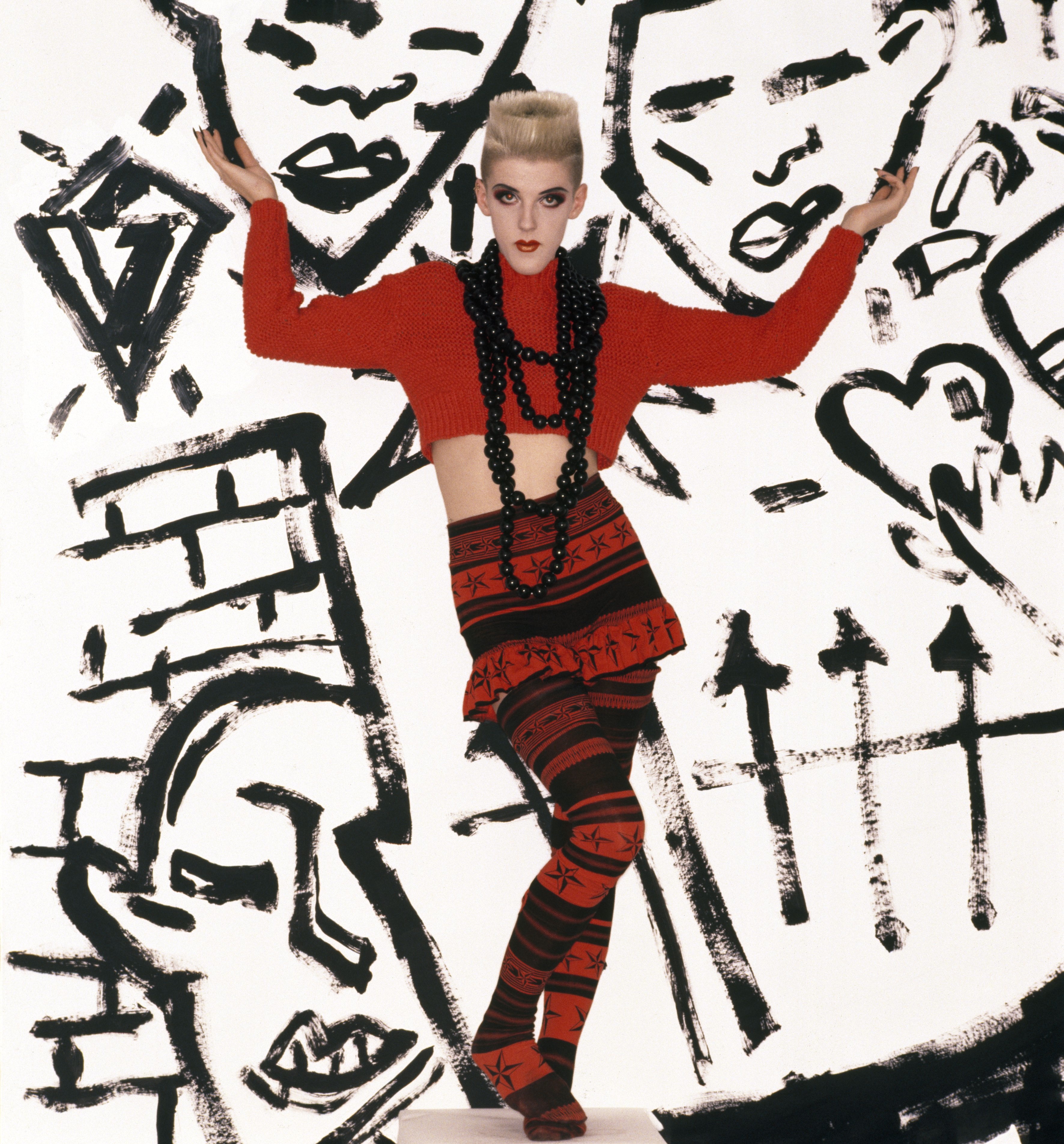 Top photo: Body Map A/W 1984 Cat in the hat takes a rumble with a techno fish Model: Scarlett Cannon Copyright Monica Curtin Middle photo: 1985 Joseph jumper: Victoria and Albert Museum, London