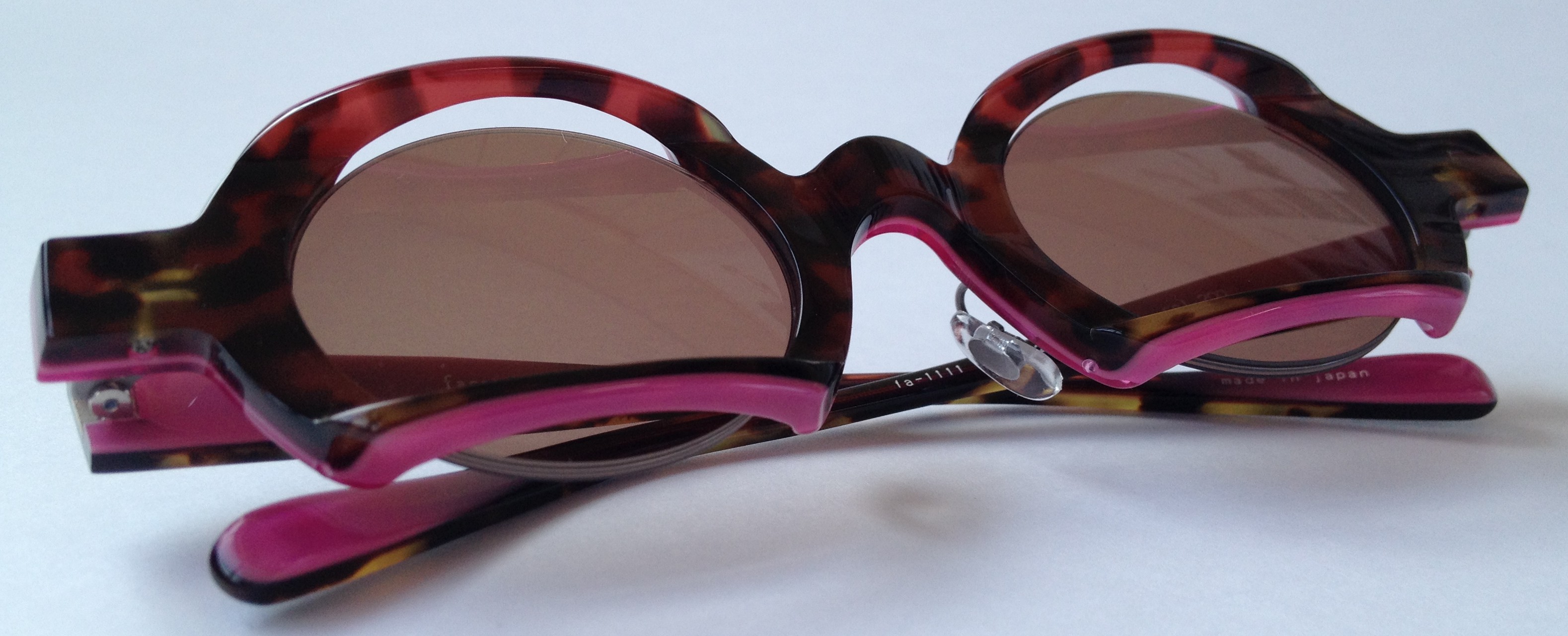The round style with floating lens (above) fa-1111 won the Silmo d’Or in the Sunglasses Category last September, but alongside that, there are plenty of others that break the mould. Factory 900 has produced several avantgarde show pieces including a collaboration with Aoyama Kogaku and an unusual multicoloured stained glass window mask design, first launched in 2011.