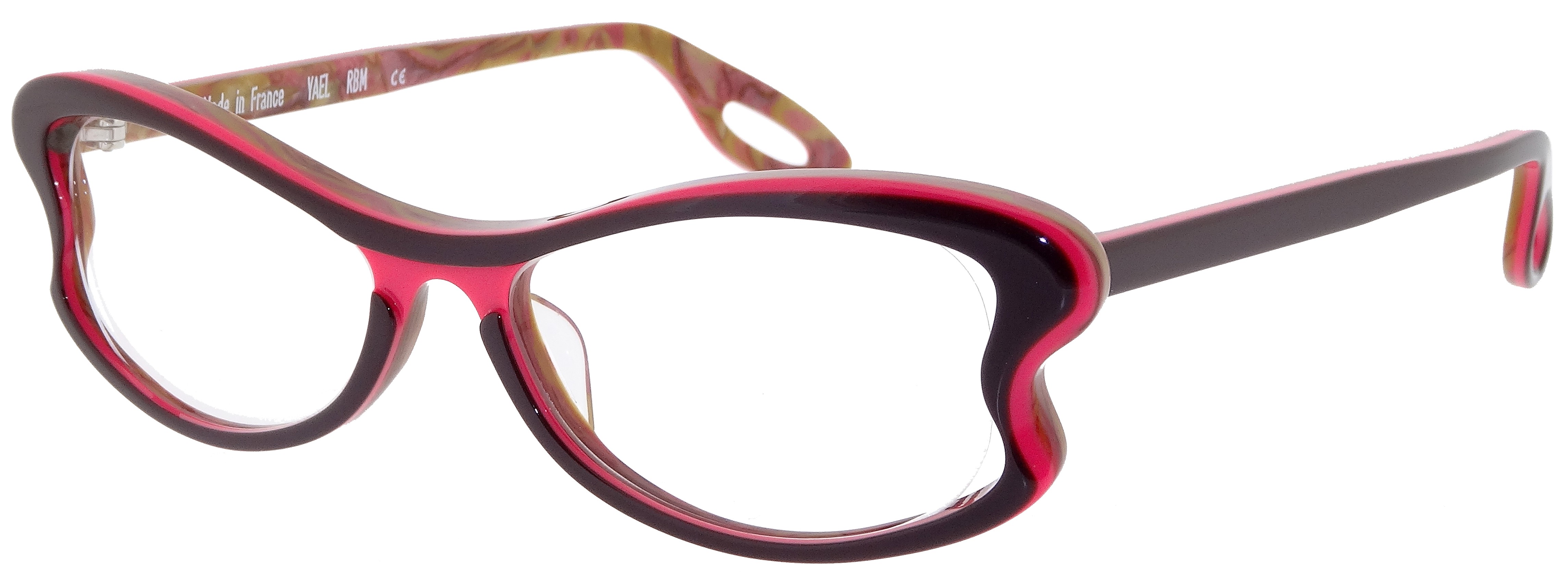 14th February 2014 Colour is keynote this spring and summer for clothing, accessories and eyewear. The palette is experimental and fun – be ready for the unexpected! French designer Pierre Cariven presents two designs in a delightful melange of colourations. Yael (above) blends black, red and camel with interior marbling interest on the insides, in a dramatic scalloped shape.