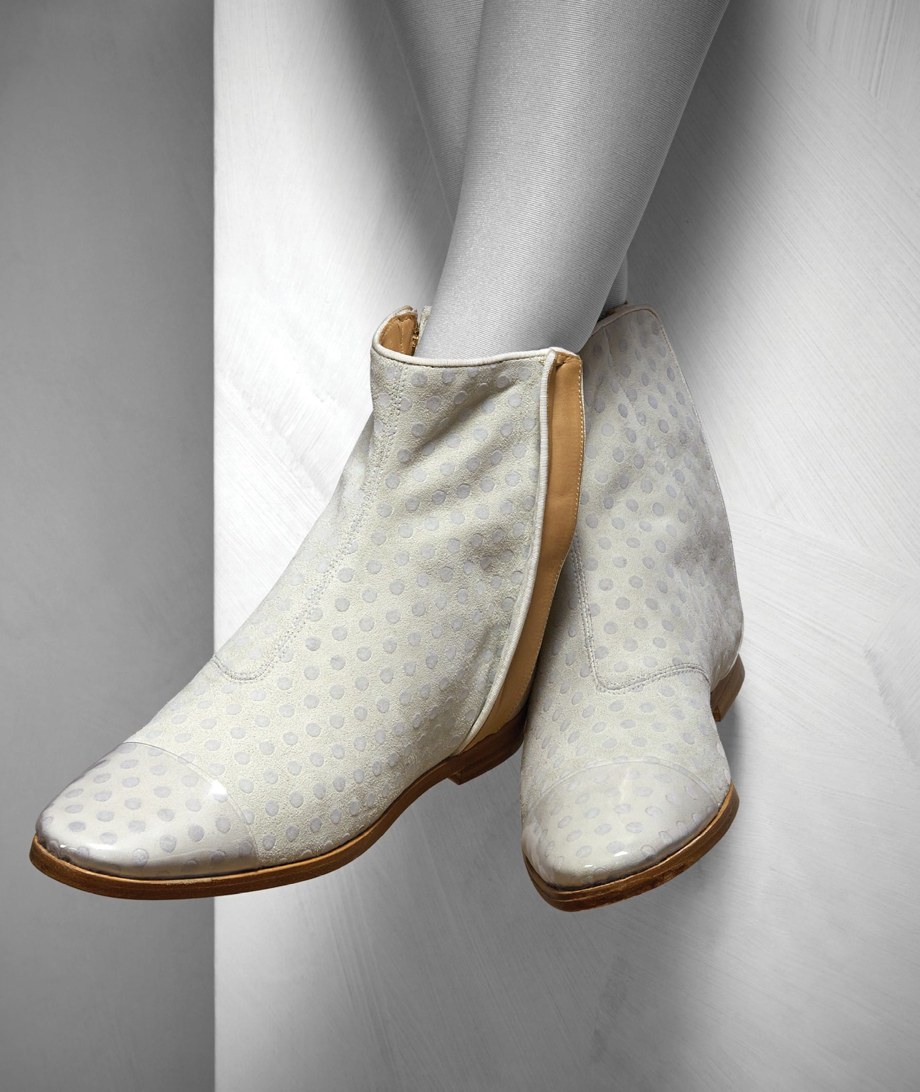“I’m inspired by everything – travel, exhibitions and seeing beautiful materials,” says Lee, “and I love leather and enjoy sourcing fabrics for the shoes. When I design, I like to cover different types of people who would like to wear the designs.” Family owned companies in Italy, who have been crafting fine shoes for three and four generations, make the shoes. The materials used in Zoe Lee shoes are luxurious and creative. Printed kidskin, bronzed patent, brushed linen, nubuck with laser techniques, and incredibly soft suede are all included in her shoe designs. I tried on several pairs and they feel wonderful – like a cosy hug for your feet. Zoe Lee’s innovative interpretations in materials add to the pleasure of wearing the shoes.