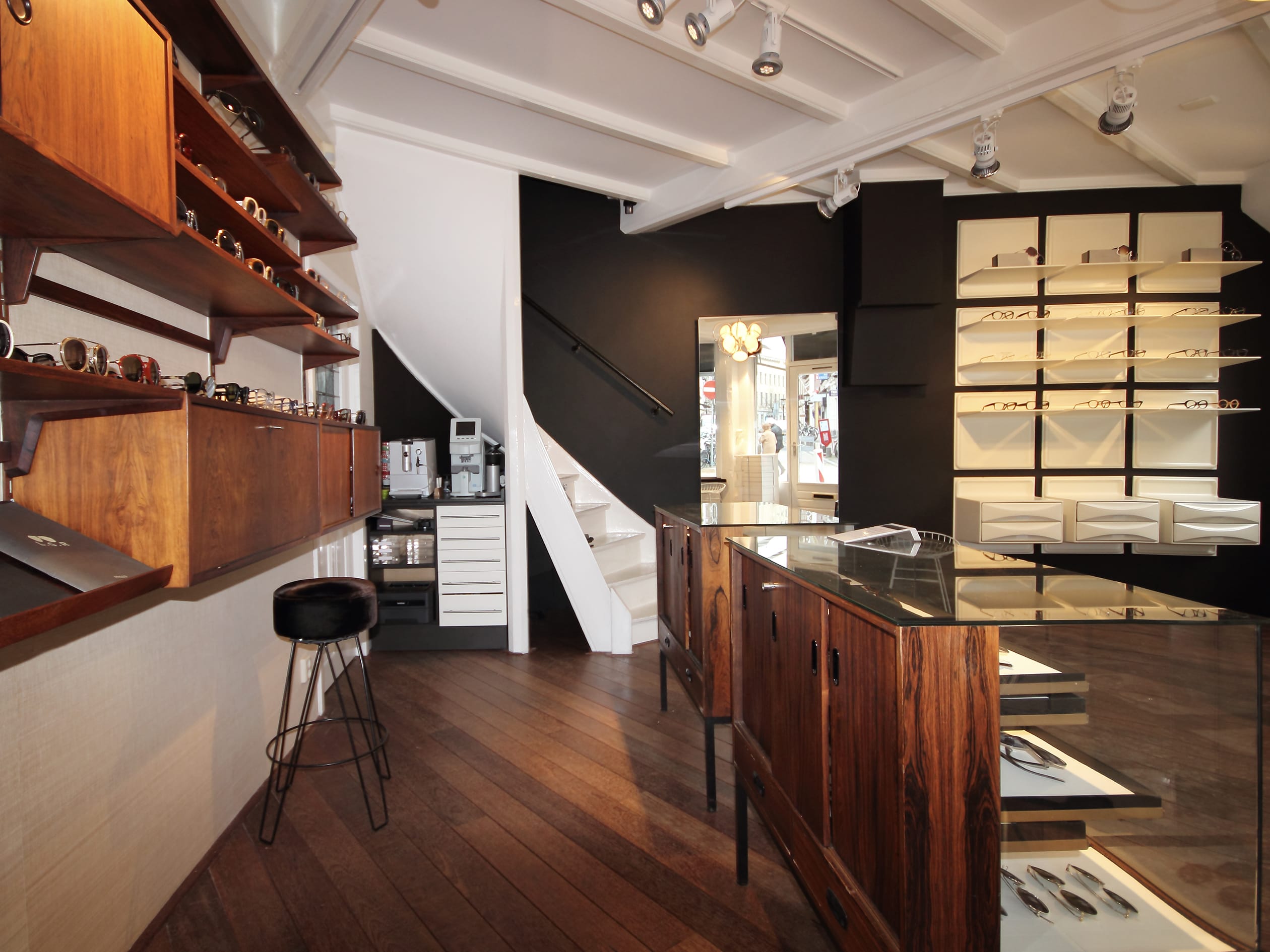 “For the interior, we searched ourselves for some unique furniture. We wanted an interior that looks exclusive – but accessible. More a fashion store than an optical shop. We are always the first in the Netherlands showing the newest Moscot collection and often we are the only shop in the Netherlands with some limited editions. And of course, we stock the entire Suzy Glam collection. (Etienne’s partner is Suzy Glam designer Susanne Klemm).