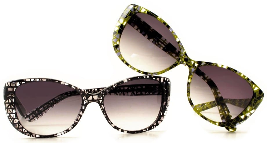 The Tangram designs by Vanni are inspired by Tangram, an old Chinese puzzle made up of a square divided into several different geometrical shapes, each in one colour. The art of the game lies in creating as many complete figures as possible, using combinations of these parts. Vanni has transformed this puzzle into frames of stylish wisdom, made from custom-made Mazzucchelli slab acetate, and the Tangram texture is all cubes splint into irregular pyramids. This is alternated against a deep crystalline background, which may be see-through or solid. An inventive concept that generates a kaleidoscope of reflected colour. www.vanniocchiali.com JG