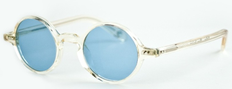 Italian creators Mondelliani mix transparent crystal acetate with sea blue lenses – very chic for summer holidays and beach escapades. The round shape is accented with a curved nosepiece and distinctive temples. Also available in lovely tones of cocoa, green and violet with contrasting coloured lenses. www.mondelliani.it JG
