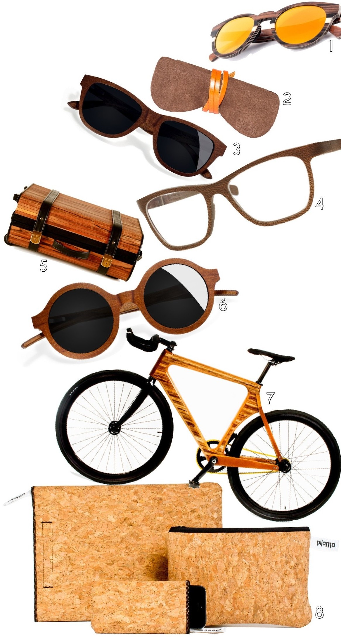 1. Chapman by Anni Shades, featuring limited edition mirrored lenses www.annishades.bigcartel.com 2. Libellule by When I was Seven7een, a natural handmade leather eyewear case, www.wheniwas17.fr 3. Hubble by Feb31st www.feb31st.it 4. Dauphine 09 by Rolf Spectacles – from the main | wood collection, made of European plane, and the very latest release from the Austrian artisan label – www.rolfspectacles.com 5. THOR wooden trolly, Embawo from www.formabuona.com / www.embawo.com 6. Tolomeo Sun by Feb31st www.feb31st.it 7. Urban bicycle by SELVA, from www.formabuona.com 8. Cork Collection, soft case / PIJAMA from Formabuona, www.formabuona.com