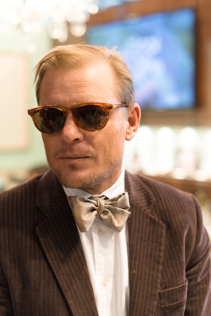 Shane Baum has created his American luxury brand Leisure Society in exquisite materials based on how he lives his life. Baum believes that life is about precious moments with family, friends and nature – one of his passions is fly-fishing,and skiing gets full marks too. “Today I am in a sporty mood, so I chose Trotter (above) from the new collection,” said Baum when photographed in Paris, “but for a wedding I would chose something different. It really does depend…”