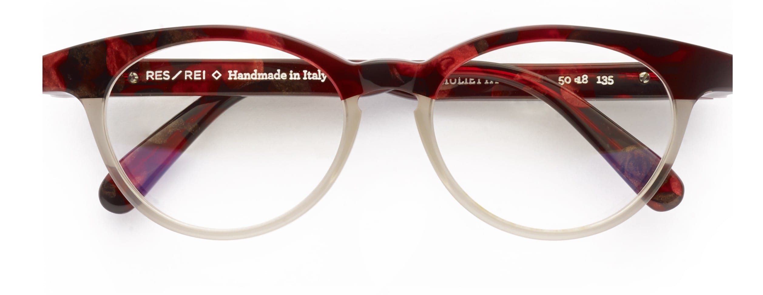 The lustrous finish of the acetate material is the result of extensive hand polishing and adds extra panache to the final effect. RES/REI frames are produced in Italy with production methods that remain faithful to traditional principles of spectacle making.