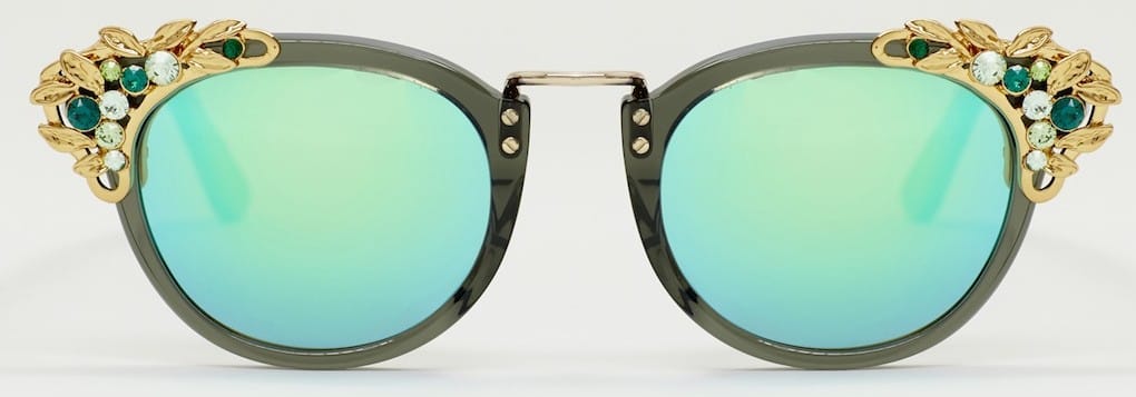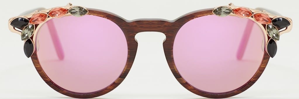 Today, the most desirable decorations on eyewear are those by independent designers who set the bar high: they include wonderful floral designs, metal work, handmade porcelain and luxurious hand assembled gem embellishments – notably, by a young generation of talented female designers including Anna-Karin Karlsson (Sweden) – www.annakarinkarlsson.com, Kerin Rose (NYC) – www.a-morir.com, and Moo Piyasombatkul (Thailand).