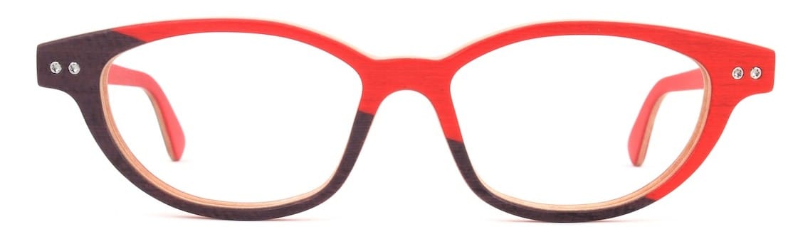 At Anni & Anni Shades, optical frame Laura combines an asymmetrical colour pairing of violet and red – in fine dyed natural wood. Made by hand in the label’s workshop in Ohio, this frame has a wonderfully unique shape, and attractive matte finish. www.annishades.com