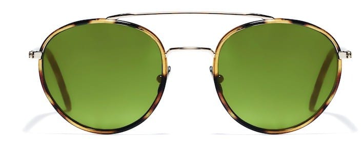 If a mirror coating is too much, then opt for a dark tinted lens. “Again there is a lot of colour choice,” explains Radley, “but the darkest and most versatile tints are grey, brown, blue and green. The green offers the most traditional look, a green lens in a simple tortoiseshell or nude is the ultimate in cool classic style.”
