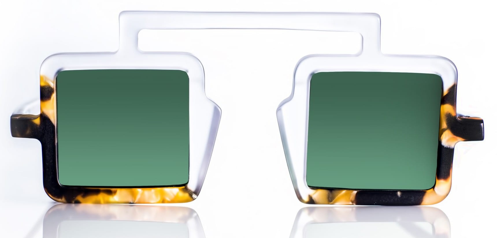 Eyewear innovators can see an appetite for bold experimental shapes, eye-catching colour and unusual details and combinations. Enter Flatline by RVS Eyewear – a rare square eye shape that demands attention. The reduced size of the squares – a throwback to retro elegance – and the unusual bridge on top, create a powerful intersection between vintage and futuristic. Colours add to the lasting impression: a graduated black/tortoise or crystal/tortoise produce two very different effects.
