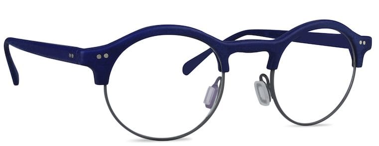 Stainless steel and Polyamide unite in a 3D laser design – D14 – by Tom Stevens at Stevens Eyewear in The Netherlands. The sleek frame in a smart duo of navy blue and a matt grey trim is crafted in the Tom Stevens atelier, where traditional spectacle making combines with the latest technology. www.stevenseyewear.com