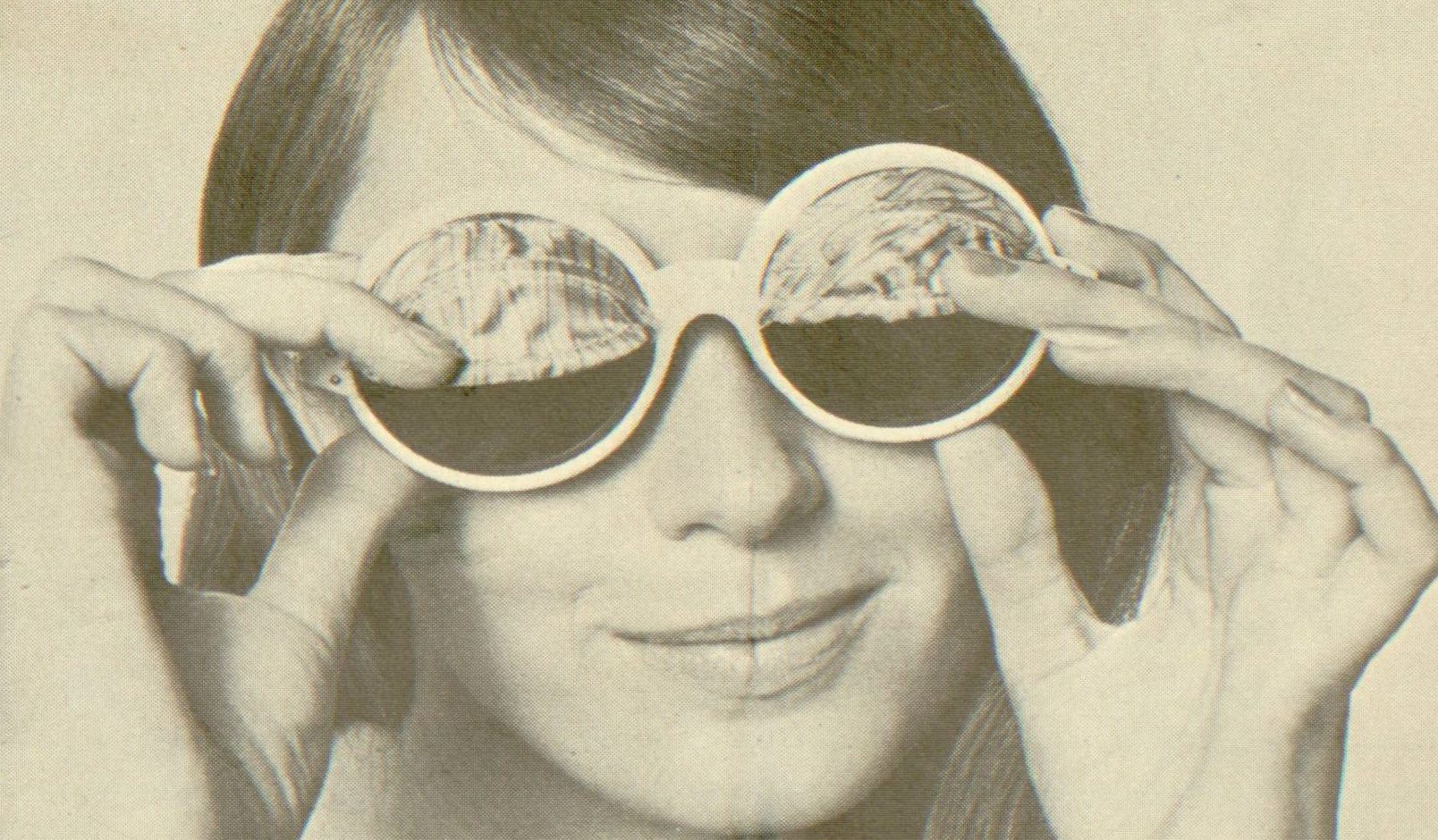 Above: Sheila Scott, the English aviator, wearing Oliver Goldsmith “sunspectacles” in 1966 – featured in ‘The Optician’, May 27th 1966