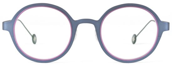 Minimalist styling highlights Big Time in surgical stainless steel in exotic Tonka Blue with Fuchsia by l.a. Eyeworks. www.laeyeworks.com