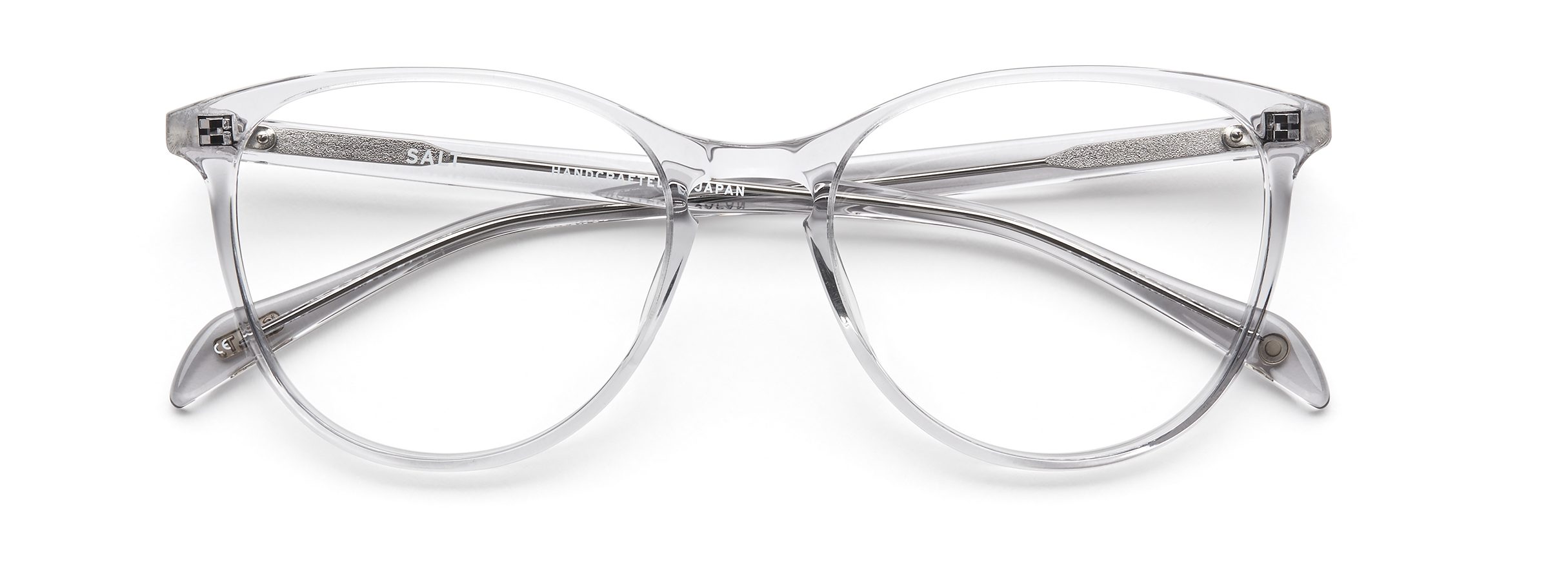 SALT. Optics often features crystal with a very chic polished finish. For next season, their Kiani frame combines a shape with retro details such as a key hole bridge and a very clean, transparent acetate material with a gentle hint of grey. www.saltoptics.com