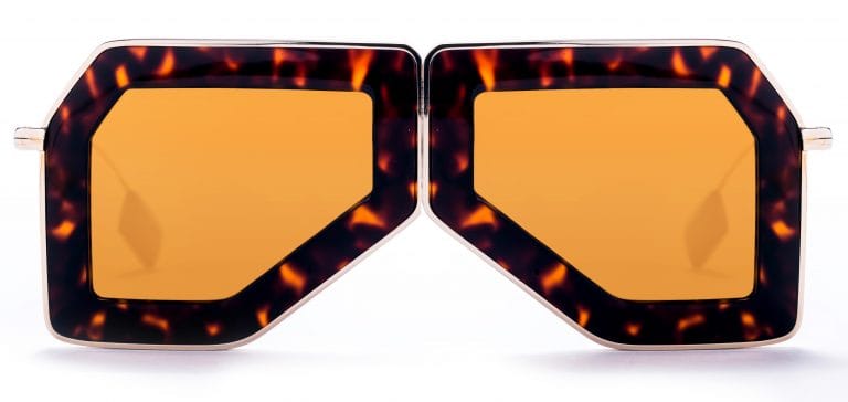 Masquerade is a one-off RVS design by Vidal Erkohen – striking, uniquely shaped and bursting with vintage feeling, yet there is something of a contemporary ethnic elegance in this little piece of art. The front comprises two 6 sided shapes in exotic acetate – colours include tortoise or black; the eye shapes are joined at the centre creating the feel of a “flat” mask, further enhanced by coloured zero base lenses – a look of the moment and a continuing trend.