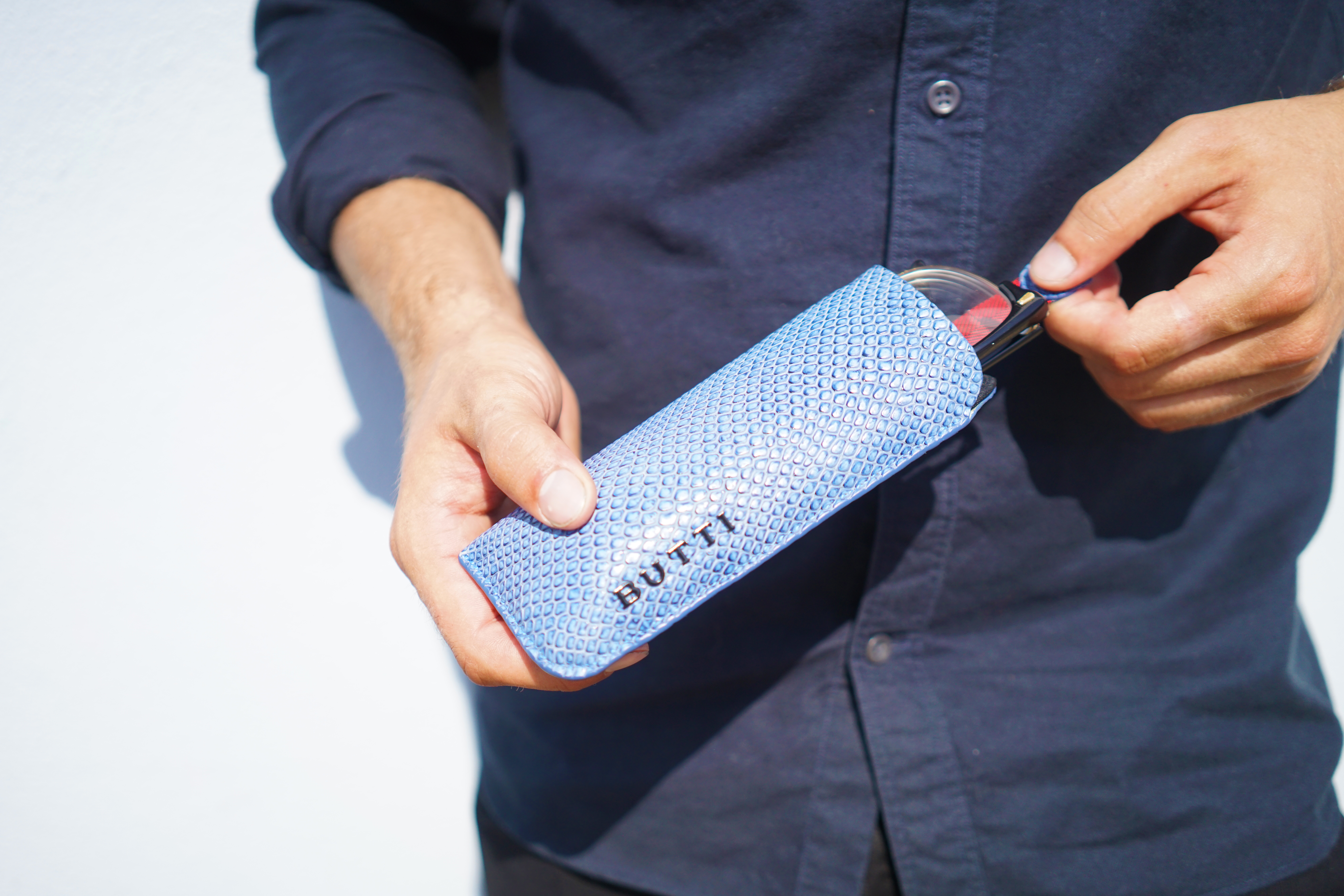 Protective, stylish cases are an important element in eyewear and the array of styles has become more creative and luxurious. Butti Eyewear Cases, a new British label, produces a refined slip case design with a hard protective layer and a silk lining, perfectly suited to modern tastes. A small leather tab releases the glasses! Made in the UK, the brightly coloured cases are produced in Italian leather with a smart lustrous finish. Butti made their first appearance at the 100% fair: find details at www.butti.co.uk