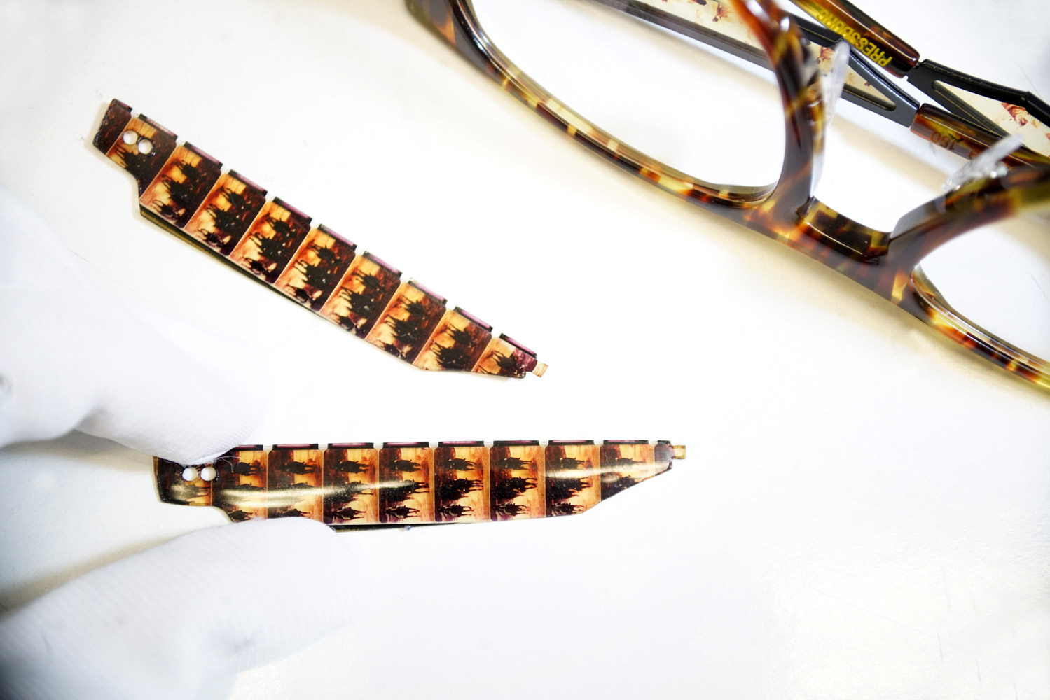 Collectible, chic, and a perfectly charming design piece to wear on the face. Cinematiq is a new collection created by Tipton Eyeworks in Budapest, which brings a completely ingenious twist to eyewear. The temples ‘frame’ 16 or 35 mm ‘vintage’ film, using a special process of lamination that designer Zachary Tipton has spent years perfecting. The very first experiments with the original footage led to an introductory small limited edition collection, which premiered in 2006, and is known for having caught the eye of Elton John.