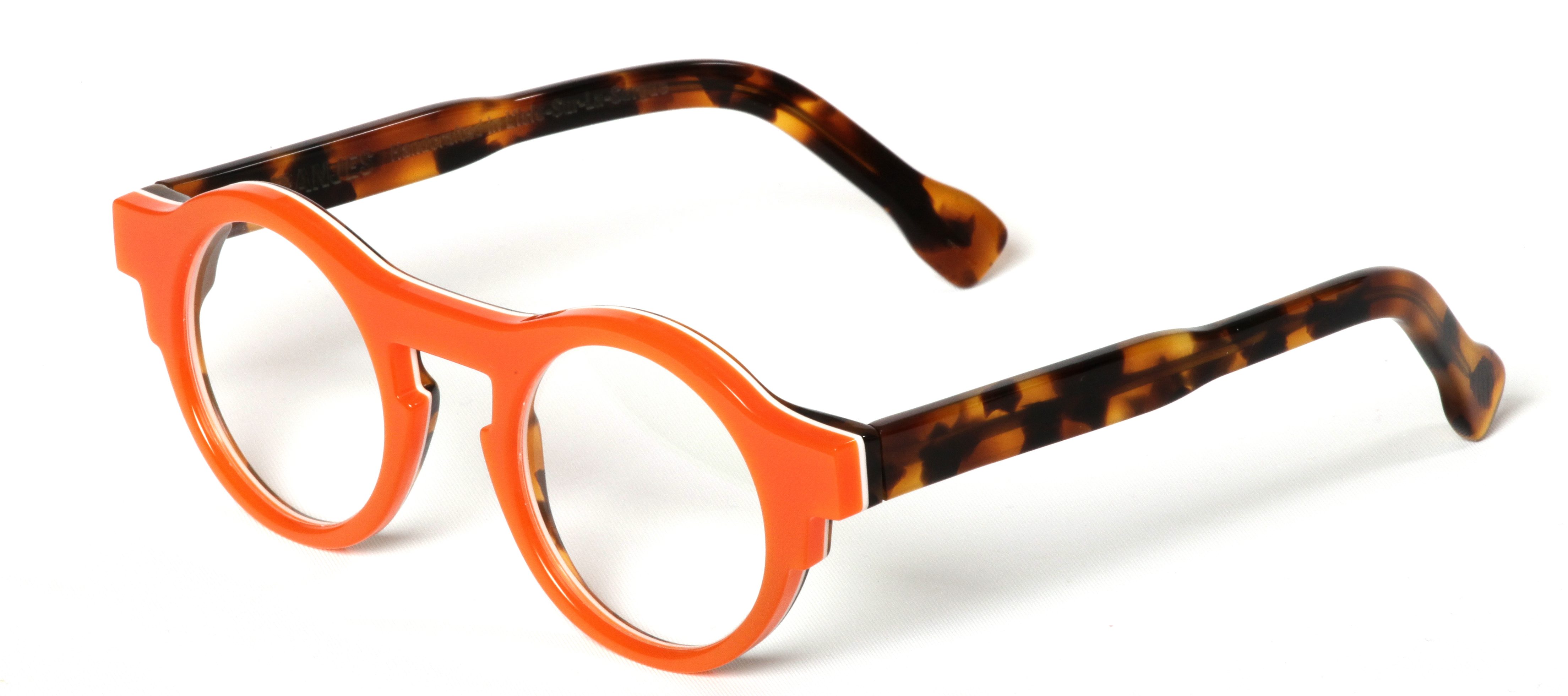 Colours that have traditionally been popular in eyewear are appearing in combination with less common choices. Independent designers are particularly creative in this area, proposing, with specialist materials, the classical appeal of a tortoise or Havana acetate with a bright pop of acidic colour, in one single frame. Model Vidice is an artisan design from Stephane Vranjes, an artist and optical store owner living in the South of France. His handmade designs are linked with the medium of photography, and play with colour and individual material mixes. http://eyewear-stephane-vranjes.tumblr.com