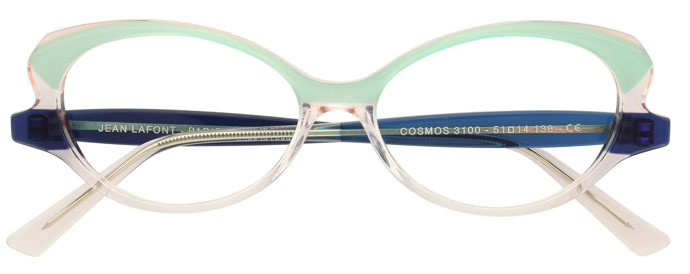 The sweet model Cosmos by Lafont Paris, an acetate design with a tri-colour combination, is a classical example of the cat’s eye shape with a playful femininity in pretty, fashionable pastels (colour way Cosmos 3100) of pink crystal and teal with bright blue temples. www.lafont.com