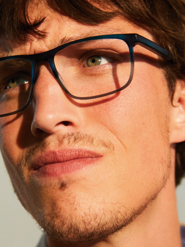 As far as eyewear trends go, blue has always held its own, across a spectrum of dark to light tones, from sky to indigo, and turquoise to lapis. Just because the classic blue is back on trend, all blueish hues are likely to see a revival or revamp, through mono, combo and gradient proposals, all of which will have a different style and look for the face. Above: acetate model Brian by Ørgreen Optics. For some of the acetate frames in this new line, colour designer Sahra Lysell says there are as many as three different tones in one single frame. The subtle colour pictured is called ‘Gradient Blue Sand Grey’. www.orgreenoptics.com