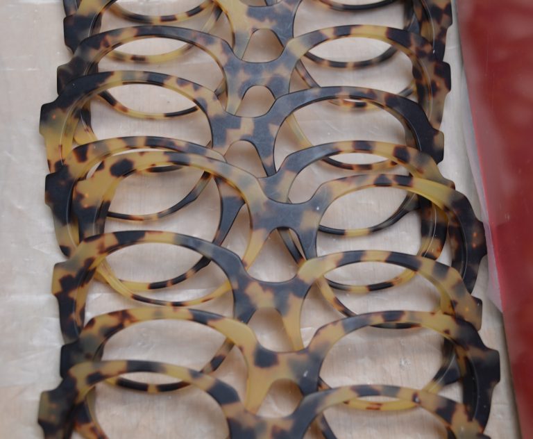 Struktur eyewear has drawn its inspiration from architecture and fashion for ten years. According to the brand owners today, Jean François Lufeaux and Thierry Bonhomme: “Our vision is to make the differences that we all have as human beings, a strength. We want our frames to be in line with and to represent the identity of each customer.” Above: Struktur glasses are made in a traditional factory in Northern France