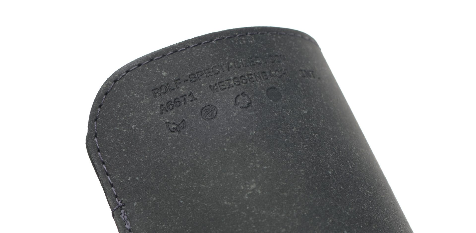 The case for their 3D printed Substance eyewear collection, made from beans, is a sturdy, natural-coloured Italian made, recycled leather case, printed with certification marks that identify that it is made from a sustainable, recyclable material. www.rolf-spectacles.com